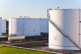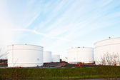 biały zbiornik w zbiorniku gospodarstwa z niebieskim niebem
