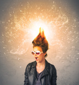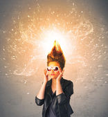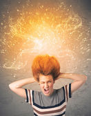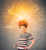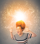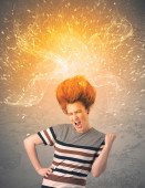 Młoda kobieta z energicznymi wybuchającymi czerwonymi włosami
