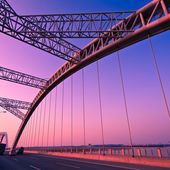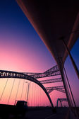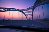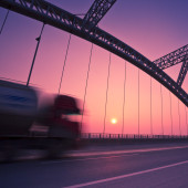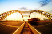 Truck prędkości przez most na zachód, ruchu rozmycie.