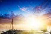 Zdjęcie "Truck prędkości przez most na zachód, ruchu rozmycie." może być wykorzystywane do celów osobistych i komercyjnych zgodnie z warunkami zakupionej licencji Royalty-free. Obraz jest dostępny do pobrania w jakości wysokiej rozdzielczości do 5760x3840.