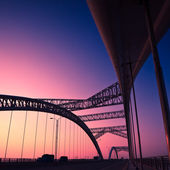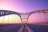 Truck prędkości przez most na zachód, ruchu rozmycie.