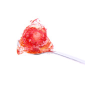 Truskawek galaretka czerwona w łyżkę tartej cookie na tył biały