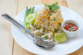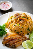 Zdjęcie "smażony ryż z chrupiącym Gurami ryby." może być wykorzystywane do celów osobistych i komercyjnych zgodnie z warunkami zakupionej licencji Royalty-free. Obraz jest dostępny do pobrania w jakości wysokiej rozdzielczości do 5760x3840.