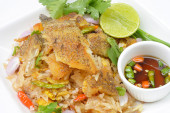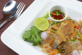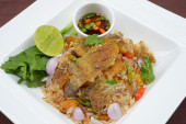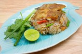 Zdjęcie "smażony ryż z chrupiącym Gurami ryby." może być wykorzystywane do celów osobistych i komercyjnych zgodnie z warunkami zakupionej licencji Royalty-free. Obraz jest dostępny do pobrania w jakości wysokiej rozdzielczości do 5760x3840.