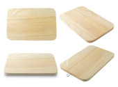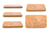 Trzy różne kąt widzenia drewniana taca na białym tle na tył biały