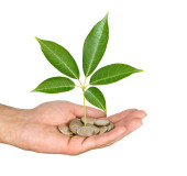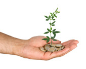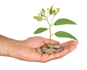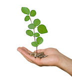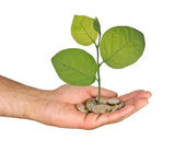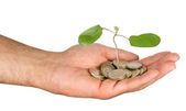 Palm z drzewa growng ze stosu monet