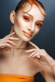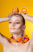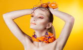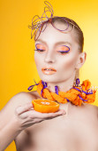Kreatywnych makijaż i fryzurę. Portret młodej dziewczyny