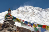 Zobacz Everest z buddyjskich flagi modlitewne z kala patthar
