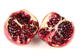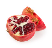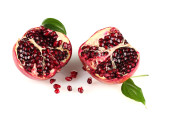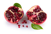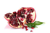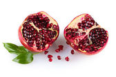 dojrzałe granatu z liści na białym tle