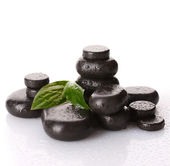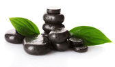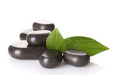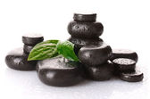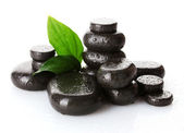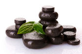Spa kamienie krople i zielonych liści na białym tle