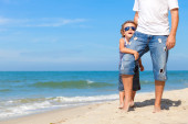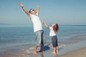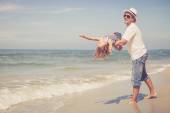Zdjęcie "Ojciec i córka gra na plaży w czasie dnia." może być wykorzystywane do celów osobistych i komercyjnych zgodnie z warunkami zakupionej licencji Royalty-free. Obraz jest dostępny do pobrania w jakości wysokiej rozdzielczości do 5760x3840.