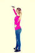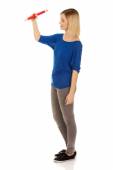 Zdjęcie "Kobieta pisze ołówkiem ponadgabarytowych." może być wykorzystywane do celów osobistych i komercyjnych zgodnie z warunkami zakupionej licencji Royalty-free. Obraz jest dostępny do pobrania w jakości wysokiej rozdzielczości do 5760x3840.