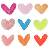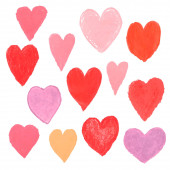 Wektor zestaw kolorowych serc w różnych kształtach i stylach na białym tle.
