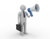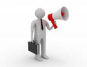 3D ludzi - człowiek, człowiek z megafon przed tłumem.