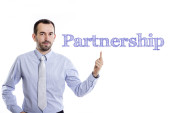 Zdjęcie "Partnerstwo - piękna dziewczyna dotykając tekst na przezroczyste gładkiej powierzchni." może być wykorzystywane do celów osobistych i komercyjnych zgodnie z warunkami zakupionej licencji Royalty-free. Obraz jest dostępny do pobrania w jakości wysokiej rozdzielczości do 5760x3840.