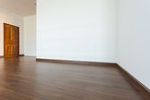 pusty pokój brązowy drewno podłogi i ściany białą zaprawą