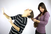 Zdjęcie "modelki tnie jej krzyku włosów" może być wykorzystywane do celów osobistych i komercyjnych zgodnie z warunkami zakupionej licencji Royalty-free. Obraz jest dostępny do pobrania w jakości wysokiej rozdzielczości do 5760x3840.
