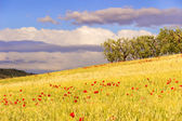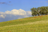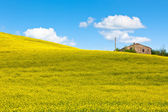 Wiejski krajobraz wiosna. Pola żółte kwiaty. Włochy (Apulia)