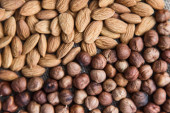 Pistacje, orzechy, migdały i orzechy laskowe tekstury i tła