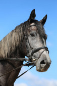 Szary kolor sportu konia portret podczas konkurencji