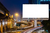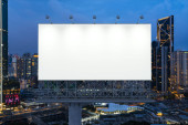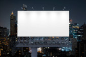 huge blank billboard in the city centre at night, blurred background.