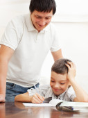 Zdjęcie "Ojciec pomoc syna zrobić pracę domową" może być wykorzystywane do celów osobistych i komercyjnych zgodnie z warunkami zakupionej licencji Royalty-free. Obraz jest dostępny do pobrania w jakości wysokiej rozdzielczości do 5760x3840.