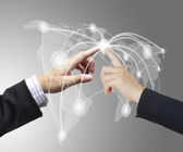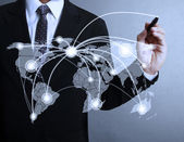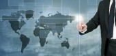 Prasy ręczne na mapie świata z cyfrowego tabletu, eksportu i importu