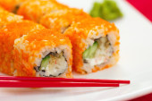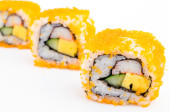 Zdjęcie "sushi z mięsa kraba, awokado i czerwonym kawiorem" może być wykorzystywane do celów osobistych i komercyjnych zgodnie z warunkami zakupionej licencji Royalty-free. Obraz jest dostępny do pobrania w jakości wysokiej rozdzielczości do 5760x3840.