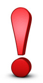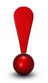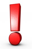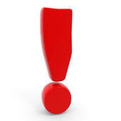 Czerwone 3d wykrzyknik na białym tle biały z cieniami