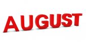 Aug Red 3d tekst - skrót miesiąca sierpnia na biały