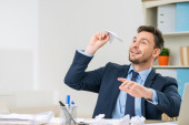 Zdjęcie "Emotional office worker sitting at the table" może być wykorzystywane do celów osobistych i komercyjnych zgodnie z warunkami zakupionej licencji Royalty-free. Obraz jest dostępny do pobrania w jakości wysokiej rozdzielczości do 5760x3840.