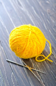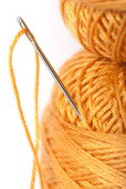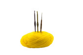 żółty przędzy z złota obrączka i hak na białym tle