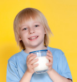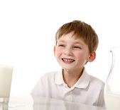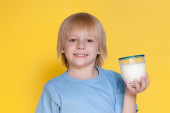 młody chłopak wlewając cukru syrop wolna aby czekoladowe mleko na stole