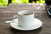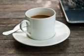 filiżanka kawy na drewno tekstury.