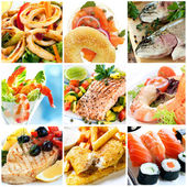 Collage żywności. Znakomita restauracja ryby i owoce morza