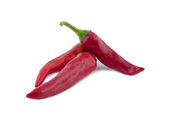Grupa czerwona gorących soczyste papryki na białym tle
