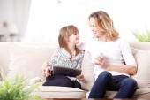 Matka i dziewczyna siedzi