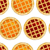A seamless sweet pattern with the watercolor berry pie. Painted hand-drawn on a white background