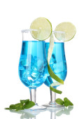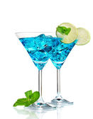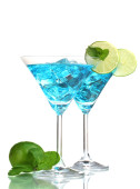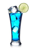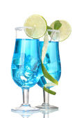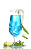 koktajl w okularach z lodu i cukru na białym tle niebieski