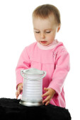 dziewczyna w ciepłe ubranie jedzenie krem lód na białym tle.
