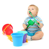 Noworodek z zabawkami