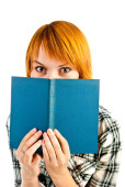 młoda kobieta piękne czerwone włosy czytanie książki