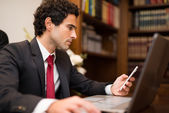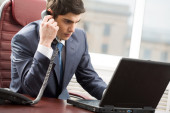 Zdjęcie "biznesmen korzysta z laptopa mówiąc na telefon" może być wykorzystywane do celów osobistych i komercyjnych zgodnie z warunkami zakupionej licencji Royalty-free. Obraz jest dostępny do pobrania w jakości wysokiej rozdzielczości do 5760x3840.