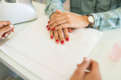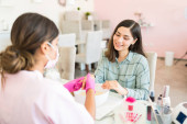 kobieta korzystających z jej wizyty w salonie paznokci