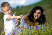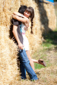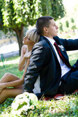 młody miłości para z balonów na naturalne tło