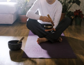 młody człowiek posiada ceremonii herbaty chińskie