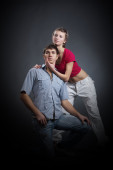 Zdjęcie "młody para pozowanie w studio" może być wykorzystywane do celów osobistych i komercyjnych zgodnie z warunkami zakupionej licencji Royalty-free. Obraz jest dostępny do pobrania w jakości wysokiej rozdzielczości do 5760x3840.