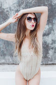 Zdjęcie "Młoda kobieta pozowanie w strój kąpielowy" może być wykorzystywane do celów osobistych i komercyjnych zgodnie z warunkami zakupionej licencji Royalty-free. Obraz jest dostępny do pobrania w jakości wysokiej rozdzielczości do 5760x3840.