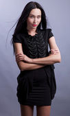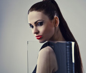 Perfect young woman with red lips.