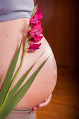 wizerunek kobiety w ciąży ze słonecznikiem. etnicznym stylu.